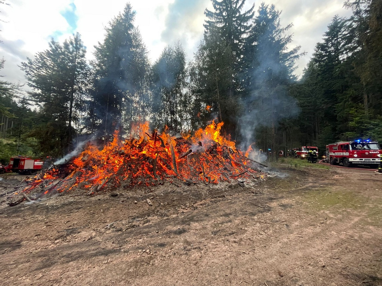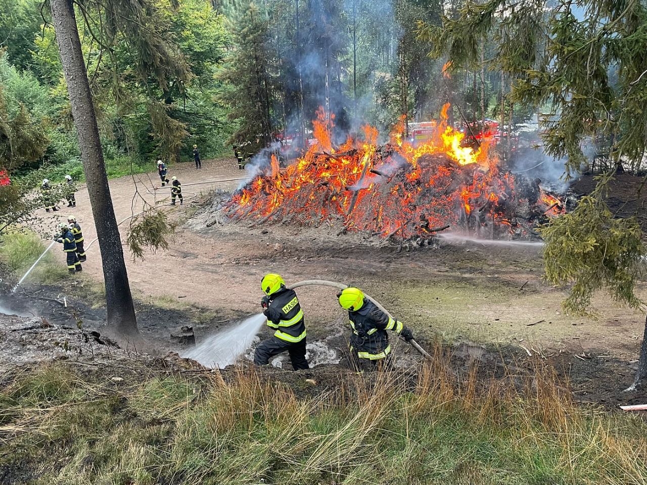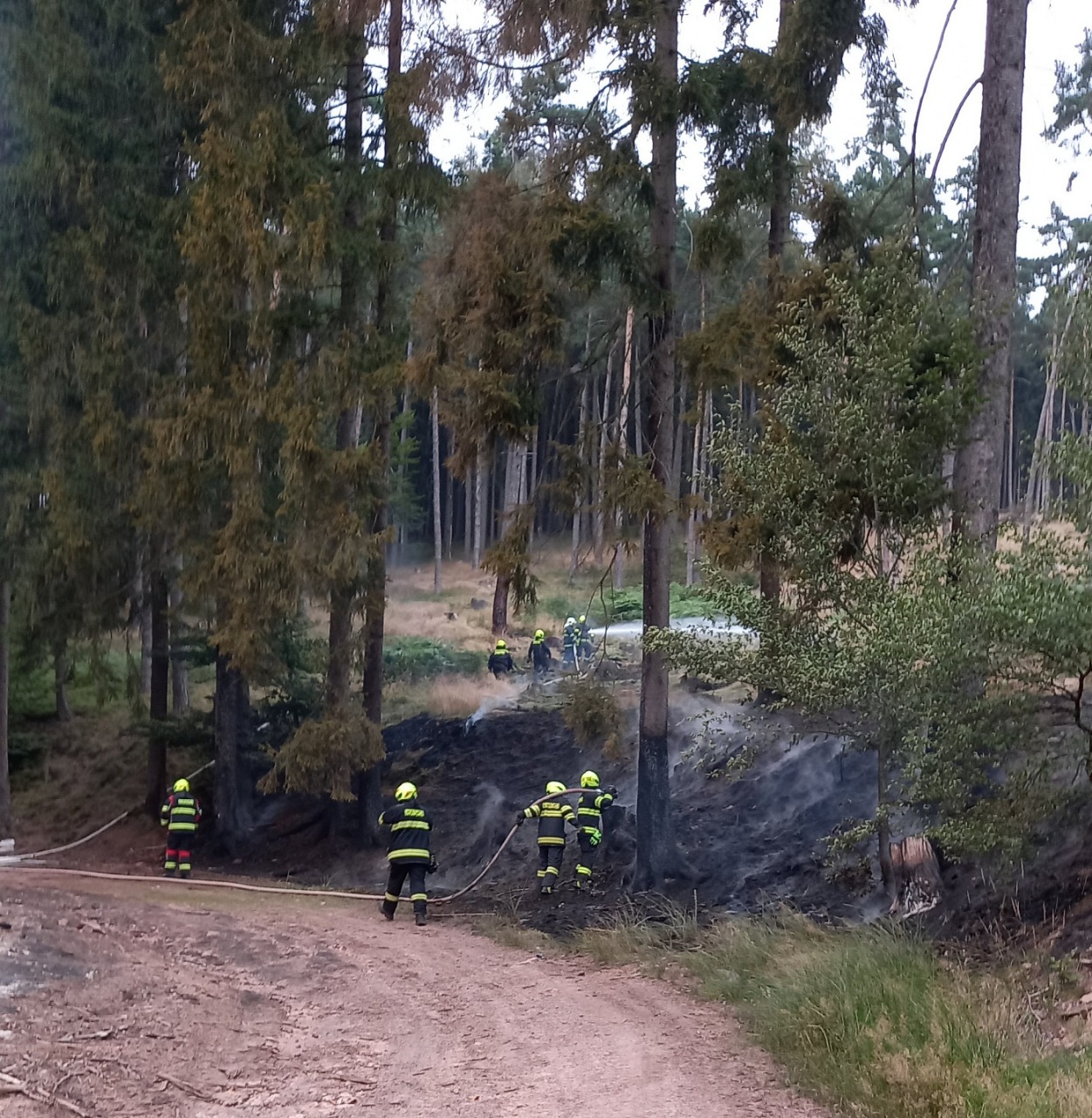 Popis zásahu: V neděli odpoledne v lese mezi Borovou a Novým Hrádkem houbaři postřehli, že ohniště, na kterém se pálilo klestí po těžbě dřeva, znovu žhne. Jednotky Nového Hrádku a Dobrušky požár uhasili. Část naší jednotky pomáhala s okopáváním jednotlivých ohnisek a s přetahováním proudů. Naše cisterna spolu se zbylou částí jednotky byla na místě zásahu jako záloha.